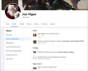 The folks at Military Phony send us their work on Jonathan Mark Vigue. Vigue comes to us from Ellijay, Georgia. At the time of this post, February 2024, Vigue is 65 years old.