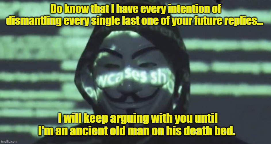 As you can see, I didn’t concern myself about that technicality… I was more focused on proving to you that your argument was spectacularly incorrect. My mode of operation, and argument, that I presented above is how I’m going to be even as an ancient old man counting his days before passing on. If your advancing that argument to me in the past did not change the way that I’ve done things, what makes you think that advancing that same erroneous argument later on would get different results?
