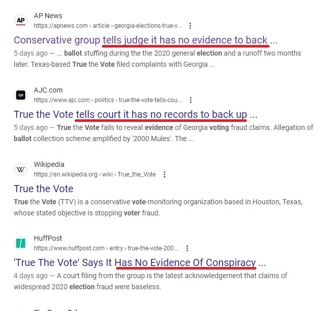I’m shocked, shocked I tell you, that True the Vote doesn’t actually have any evidence of ballot stuffing to back up its claims: