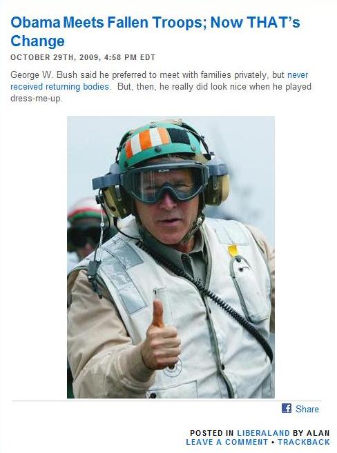 Yeah, Obama makes ONE trip to Dover so he’s automatically a better President than Bush was. OK. that’s your opinion, but at least get the whole quote from the Stars and Stripes interview instead of picking words out;