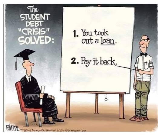 My problem is that you (the student) signed your name saying that you accepted the debt to get what you wanted. Now, it’s time to honor your word.