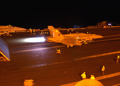 Don Carl sent me this article, 24 Hours on the ‘Big Stick’ from PJ O’Rourke, about his 24 hours as a guest on the USS Theodore Roosevelt. It seems he discovered reasons to vote for John McCain while he watched a night launch of F-18s from the deck of the nuclear-powered carrier;