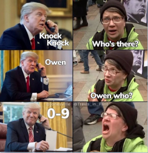 Once again, all good. Bidens hand having a conversation with Obama, Trump telling them to wait at the airport for their money, and outbound/inbound rocket reactions. Hard to pick a favorite.