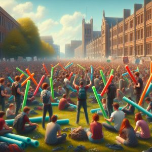 Maybe even stage a (riot) or two, kicking over stuff. Two can play the “bad boys and girls” game. Make the college think “whoa, maybe the people we’re f**kin’ with aren’t such pansies after all”.