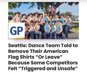 For once, I’m fully on board with the cancel culture morons – more dance teams should be ordered to remove their shirts.