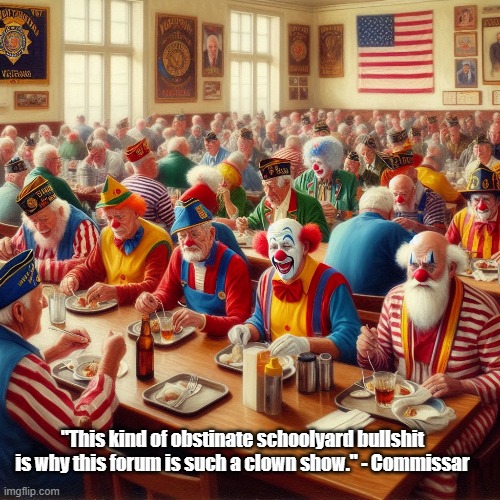 “This kind of obstinate schoolyard bullshit is why this forum is such a clown show.” (linked)