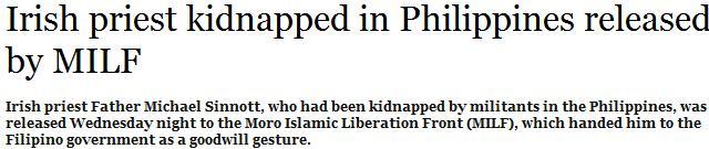 Sorry. I realize that the Phillipino MILFs are nothing to laugh about, being the terrorists that they are. But somehow, with an American translation, an Irish priest with a MILF. . . the jokes are there, it’s just too funny.