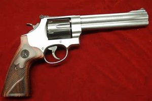 My favorite revolver S&W 629 4” SS, Comes with houge grips. Travels well in a chest holster. Sweeting shooting and accurate. Light trigger in double action. It’s. Better than my model 12 .38 Spcl. I had in the service any day.