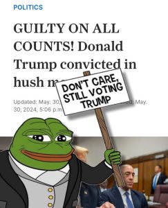 One of the objectives of the sham trial against Donald Trump is to get him to lose support. It speaks volumes when even those on the left, with working knowledge on the court system, see the case as being weak and indicate that a conviction may get overturned. In the aftermath of the conviction, a site where people could donate to conservatives ended up “crashing”. Folks still intend to vote for the person they intend to vote for. Enjoy your weekend!