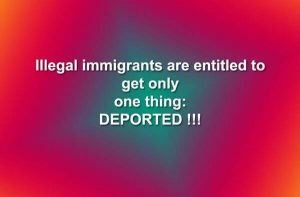 Well, I’m just gonna take a wild stab at it here – maybe suggesting that all illegals take a powder? Hit the bricks? Make tracks? Get the hell gone? Or get thrown out, as apprehended, as the songs say “Just as You Are”, On the Road Again”?