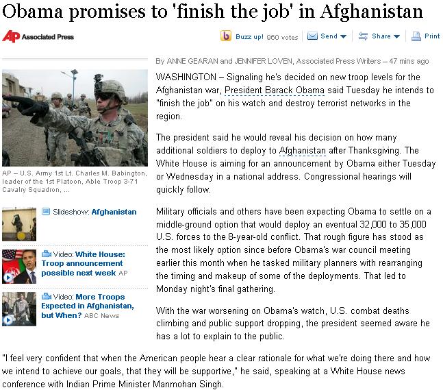 “It is my intention to finish the job,” he said of the war in Afghanistan….