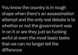 Lastly, they left the shoes behind anyway. There is a picture of one on the podium after the shooting and Trump is gone. I would have wanted my shoes too in case I had to run, but it simply wasn’t feasible.