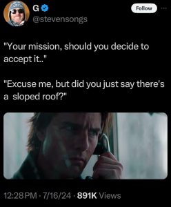Ok. I admit I laughed out loud at the bovine (cow/bull/steer – I’m not a biologist) on the roof. It’s the perfect meme – timely, pertinent, and needs no words to convey its deeply sarcastic meaning.