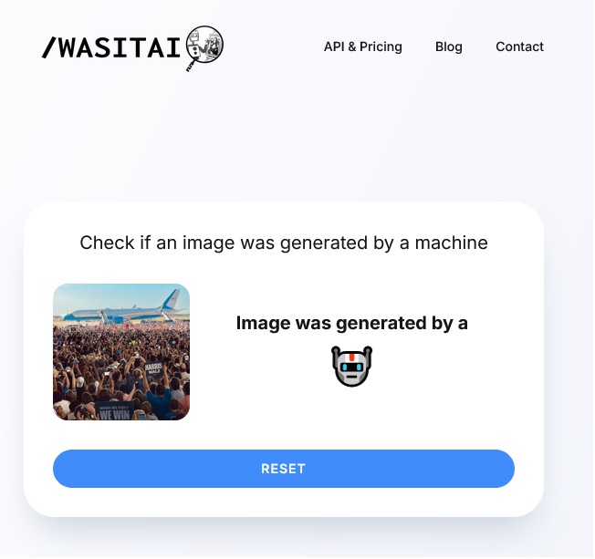 While I very much appreciate reading all the articles and comments on this forum, I have never posted here before. Here goes my first try… I have been using the great (g)od of all Internet knowledge, Google, to see if there are any other articles confirming thebesig’s conclusions. My results astoundingly seem to agree with what MarineDad61 found. It’s also what average voters would believe. So I took the effort to use the same Isitai image tool to see what the results are and it came back as 85% likely to not be AI generated. Me thinks there is collusion going… Or my eyes are lying. The images and videos from the event all show no reflection of the large crowd on the airplane, but the real scene without the crowd.