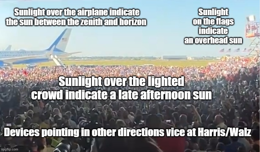 Maybe the airdales will confirm: when, if ever, do you let throngs of people on the ramp? The location is UPS DTW Gateway, and I don’t think Big Brown would want to do a FOD walkdown of an entire tarmac. Plus, I’ve seen other looks at the crowd where they zoom in on the cell phones “people” are holding and there is a multitude of images that are NOT of the rally on those phones. I see plenty of civilians posting videos from a Trump rally, but NOTHING from a Harris rally. Why is that?