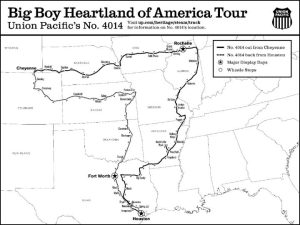 Big Boy No. 4014 will depart on the “Heartland of America Tour” on Wednesday, Aug. 28 from Cheyenne, Wyoming, and travel across nine additional states: Arkansas, Colorado, Illinois, Iowa, Kansas, Missouri, Nebraska, Oklahoma and Texas. The eight-week tour concludes in late October. No. 4014 will be on display in the following locations: