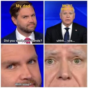 The debate between JD Vance and Tim Walz has provided plenty of meme opportunity. Conservatives quickly jumped to action, firing the meme cannons and having fun at Tim Walz’s expense. Enjoy your weekend!