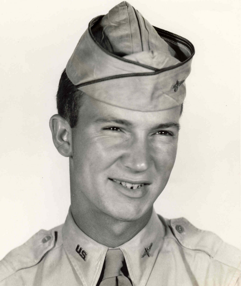 Born in Huntington, West Virginia, on Halloween in 1921, he attended Virginia Tech for college classes beginning in 1940. When the US entered World War II, he joined the Army Enlisted Reserve Corps on Armistice Day (11 November) 1942. He was called to active duty in February of the following year and enlisted as a private into the Army’s Air Forces.