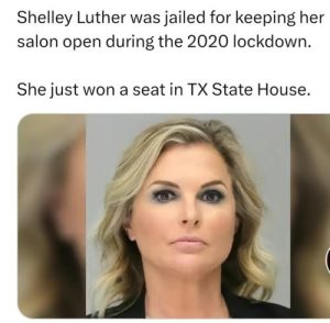 The Shelley Luther story is inspiring. Never heard of her before today. Great to see we have another representative with a mug shot for being politically persecuted. Daughter of a Marine who refuses to give up or give in. https://www.christianpost.com/news/salon-owner-jailed-for-defying-covid-rules-wins-texas-house-seat.html