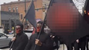 The governor of Ohio and city officials in Columbus are speaking out after a group of masked individuals marched through the streets of the Ohio capital city Saturday dressed in black and holding flags with swastikas on them.