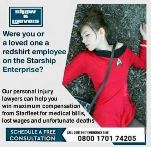 “ If you have a bastard child fathered by James Tiberius Kirk, you may be entitled to compensation!”