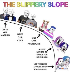 “Now you just have the absurdity of ‘I have two mommies and I’m so proud to show them that I can wear the uniform too.’ So they, it’s just like everything else the Marxists and the leftists have done. At first it was camouflaged nicely and now they’re just open about it.”
