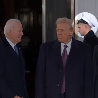 Remember when the Marine’s cover came off by the chopper and he didn’t flinch, and then-President Trump picked it up and placed it back on the young man’s head since he didn’t break bearing to retrieve it?