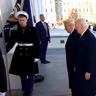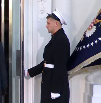 I seem to recall during Trump’s first term one of the Marines flanking the steps of Marine-One had his cover blown off completely and he remained at attention and unmoving until President Trump himself picked up the cover and placed it back on the Marine’s head.