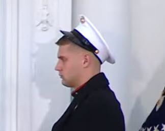 Brings up an interesting point about protocol – does he break from his sentry stance and adjust it, or go with it?