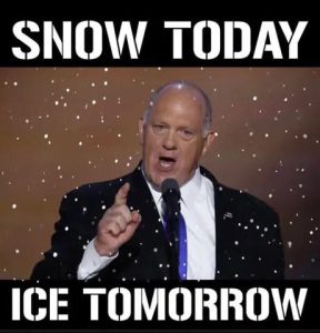 Nothing says cold like two snowy palm trees huddled together shivering.