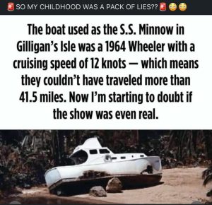 Regarding the SS Minnow’s being a 1964 Wheeler capable of cruising at 12 kt/hr and could not have traveled more than 41.5 [nautical] miles …. that does not matter!