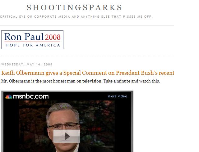 First of all, this ShootingSparks fellow was manipulating the social networking site and then found a blog entry about paulians manipulating Digg. I guess that adds a measure of credibility to JWF’s post ShootingSparks found, doesn’t it?
