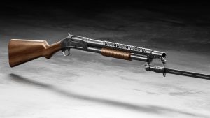 The 1897 Winchester shotgun without the barrel shroud and bayonet lug is a John M. Browning design. It was the most popular pump shotgun for hunting and as a riot gun back in the early 1900’s. It became the most popular shotgun in Cowboy Action Shooting; so much so that the China’s Norinco has been making copies which currently sell for about half what the originals cost. I guess those Trump tariffs will equalize those prices. I have an original with a shortened barrel that was made in 1913.