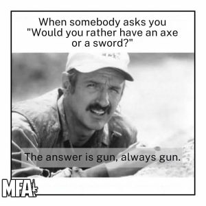 Well Barney did kill a floor and a ceiling several times. “Spell “orange”.” Marine…”The color or the crayon?”