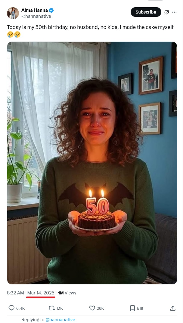 The things that people would do to get points and social media engagement. A recent “fad” on X involves a woman lamenting the fact that she just turned 50 and is celebrating alone. Other ages are used, but the statements are nearly identical. A whole bunch of people jump on the thread and “simp” for the person who “lamented” being alone. A check of this one account’s posting history shows that this was not the first time they “celebrated a birthday” alone this year. Enjoy your weekend!