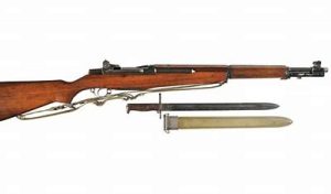 The bayonet for the M-1 Rifle is not the bayonet depicted in the photo above. That bayonet was the Model 1905 U.S. bayonet designed for the Model 1903 Springfield Rifle. The standard bayonet for the M-1 rifle had a 10-inch blade. Although, there are some early 16-inch bladed ones that will fit the M-1.
