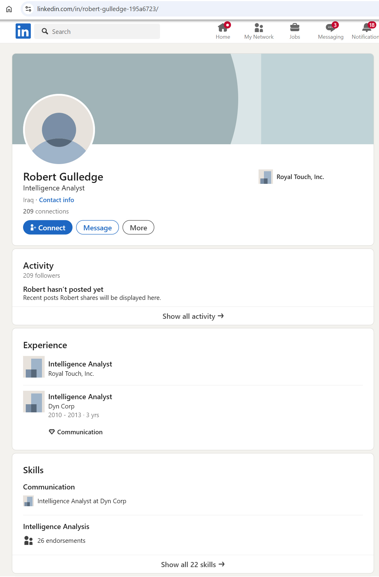 One that raised flags was a 2023 application for a job as a senior research analyst on a U.S. State Department contract. A court record said Gulledge was later questioned and acknowledged using a phony DD 214, as well as submitting a fake training certificate to confirm his work qualifications.