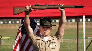 Marine Staff Sgt. Payton Garcia (a fuel specialist!) matched a 66-year-old Marine Corps marksmanship record by taking the overall first prize in the Marine Corps Championships – in Pistol, Rifle, and Multi-Gun events with the highest overall score..