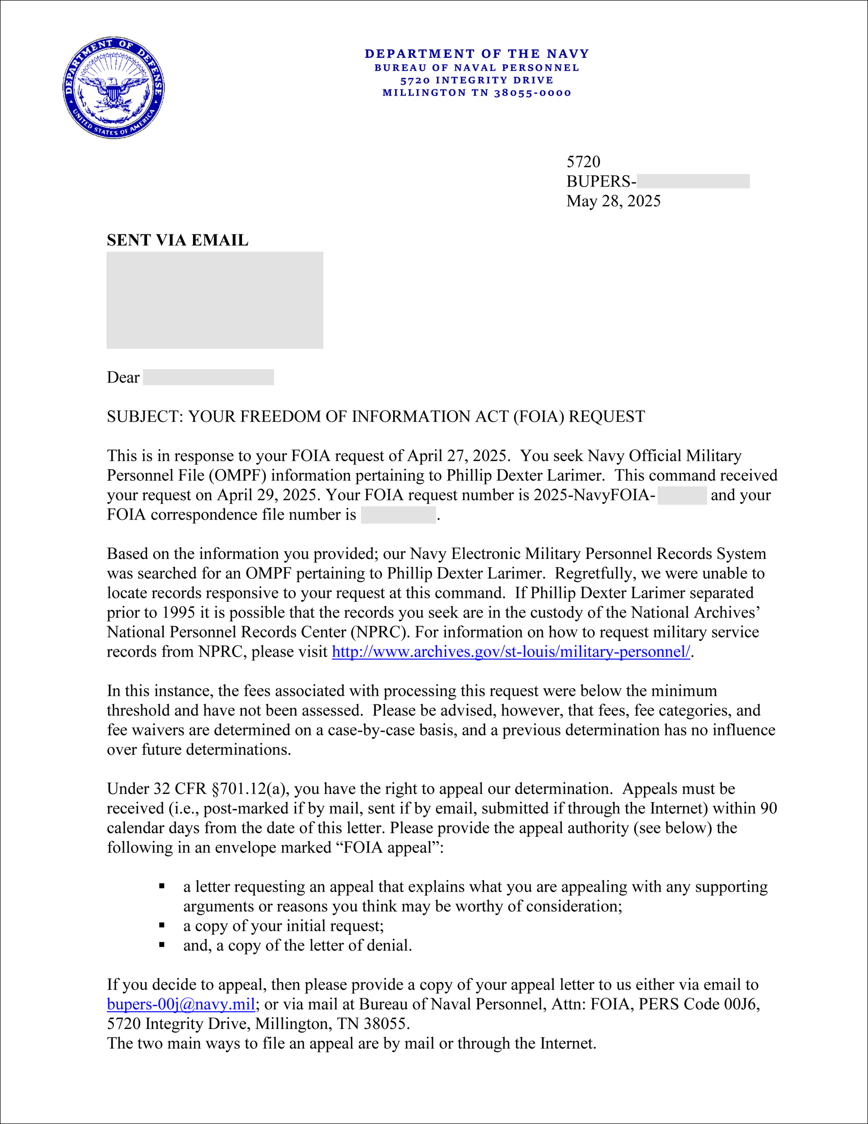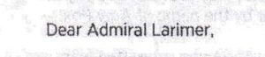 Although they started the letter with “Dear Admiral Larimer”…