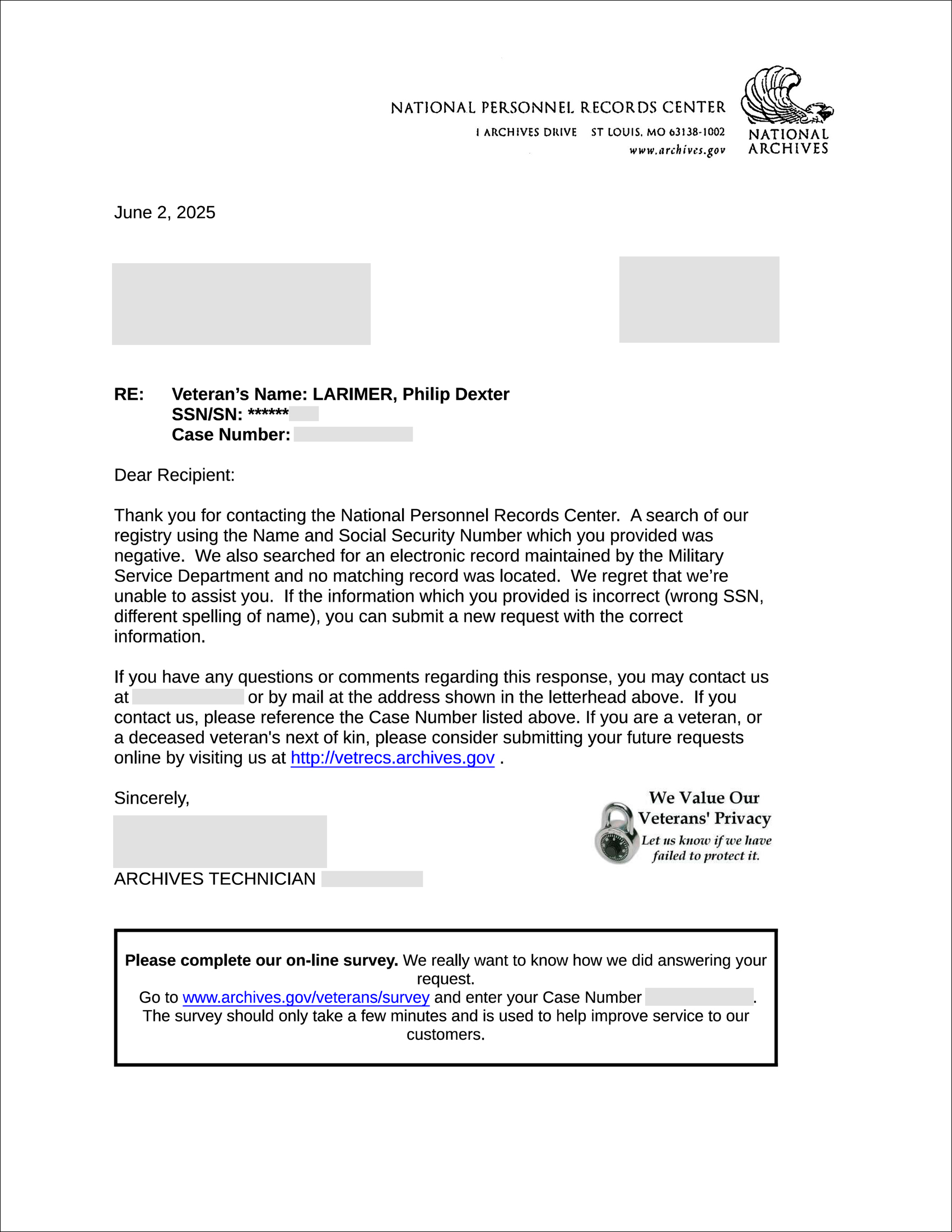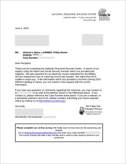 - National Personnel Center Records: “We’ve got nothing. This man is a military ghost!”