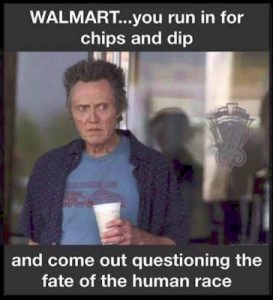 Haven’t been into a Wally World in nearly 30 years and that was only because I had just rescued a little pup and I needed a collar and some chow for him. Being as it was a Sunday in the South Small Town they were the only ones open. I was in the cashier staffed check out line with just a small buggy of items when the front end mgr came up to me and said “Sir, we have several self check out lines open.” Told her…”I don’t work here.”