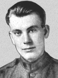 The President of the United States of America, in the name of Congress, takes pleasure in presenting the Medal of Honor to Corporal Thomas A. Pope (ASN: 1387320), United States Army, for extraordinary heroism on 4 July 1918, while serving with Company E, 131st Infantry, 33d Division, in action at Hamel, France. Corporal Pope’s company was advancing behind the tanks when it was halted by hostile machinegun fire. Going forward alone, he rushed a machinegun nest, killed several of the crew with his bayonet, and, standing astride his gun, held off the others until reinforcements arrived and captured them.