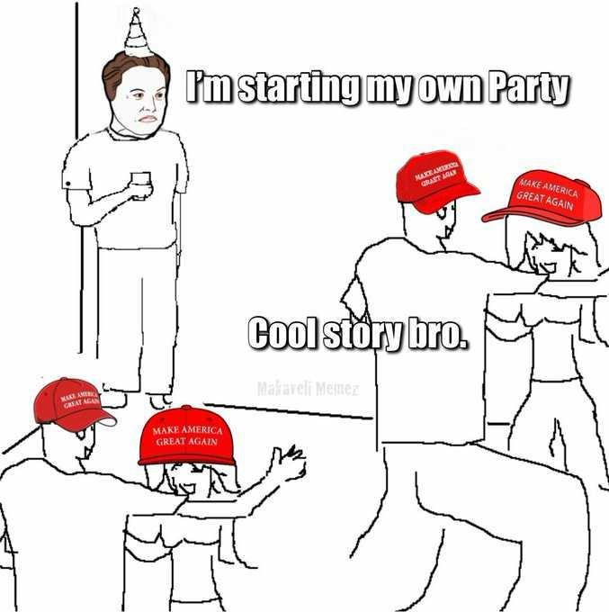 Yeah, until Musk walks back these posts, he can take his new party and shove it
