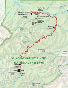 This National Park Service map shows the route that Army Air Forces Lt. Leon Crane took to survive a plane crash in the Alaskan wilderness on Dec. 21, 1943. (National Park Service photo)