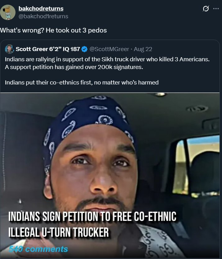 That petition was started by the “ASSHOLES of Punjabi” or something like that. We had these curry eaters in all the time at a truck shop. Cabs stunk to high heaven and one even cut a hole in the floor board and was pissing through it. The shop manager refused to work on his truck, guy was calling him all kinds of stuff we didnt understand.