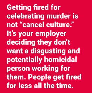 You are entitled to your own opinions. However… when expressing those opinions starts to affect your bosses bottom line, you are no longer an asset, you are a liability. Don’t take it personally, it’s just business.