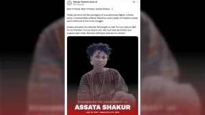 “Rest in Power, Rest in Peace, Assata Shakur,” the CTU’s post read. “Today we honor the life and legacy of a revolutionary fighter, a fierce writer, a revered elder of Black liberation, and a leader of freedom whose spirit continues to live in our struggle.