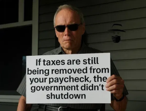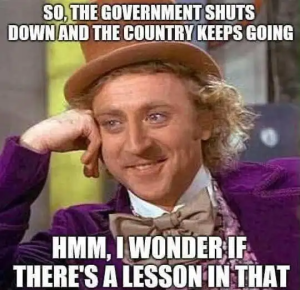 Awesome memes, will definitely steal and send to my like minded furloughed friends. I’m working but no pay…