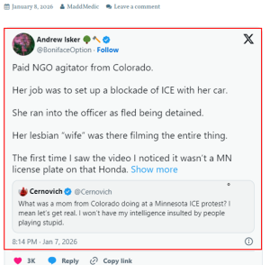 Clarifying to Lars & Co. that she was killed while being insanely stupid is not rejoicing over or laughing at her death. Pointing out that trying to (and succeeding!) assault a federal officer with a motor vehicle will most likely result in being killed, and claiming that Charlie Kirk ‘deserved’ to be killed because he had open debates (which he most often won) with leftists is not the same thing.