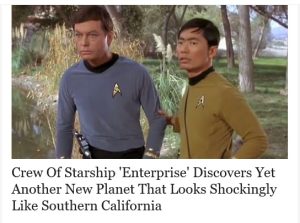 The reason that all of the planets look like southern California is called the ‘Thirty Mile Zone’ for paying local rates to cast and crew.